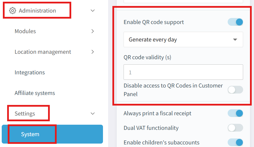 In the Manager’s Panel, go to: "Administration"- "Settings" - "System" and in the "General" section, scroll down to find the section related to QR code configuration.