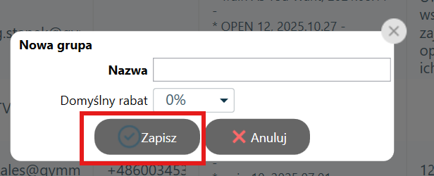 Krok 2. W okienku podać nazwę grupy i kliknąć "Zapisz".