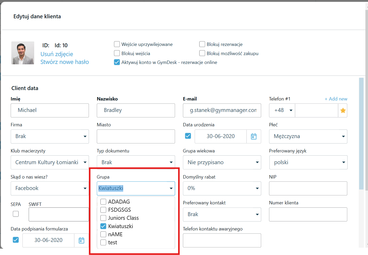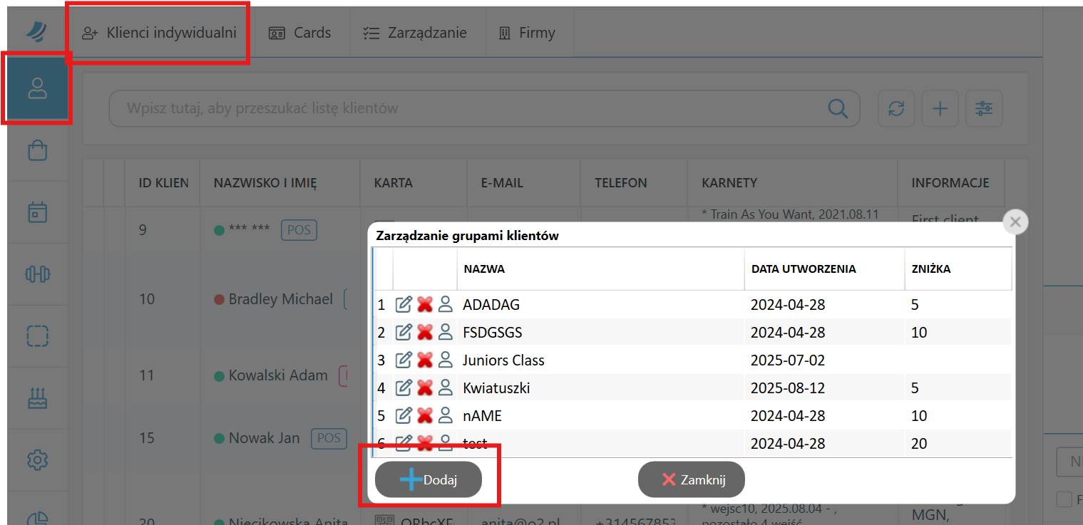Aby tylko konkretne osoby miały dostęp do danego karnetu, należy stworzyć grupę klientów i przypisać ją do wybranego karnetu.