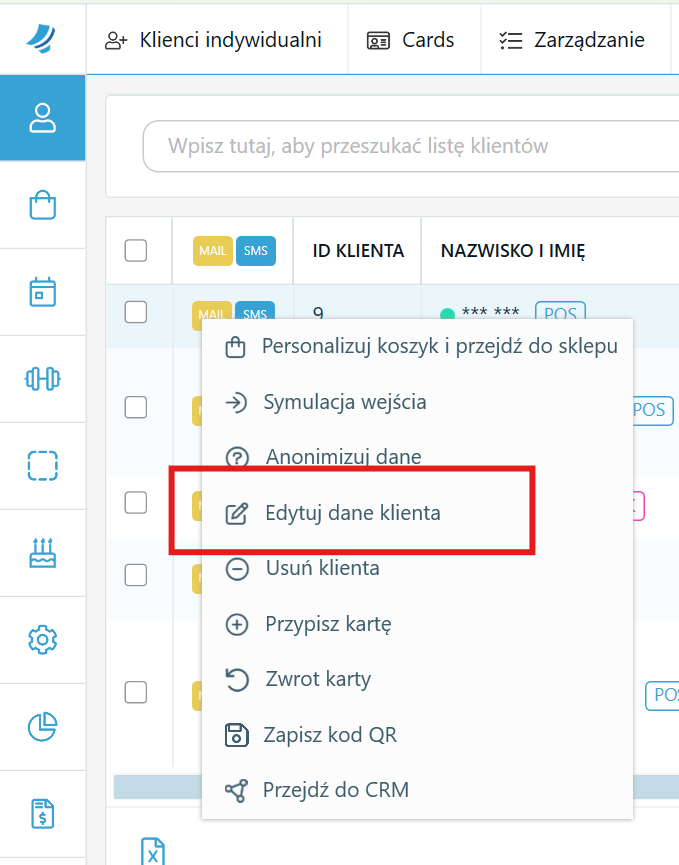 Krok 4. Aby przypisać klienta do grupy z poziomu POS, należy przejść do zakładki "Klienci", odnaleźć klienta, kliknąć na nim prawym przyciskiem myszy i wybrać "Edytuj dane klienta".